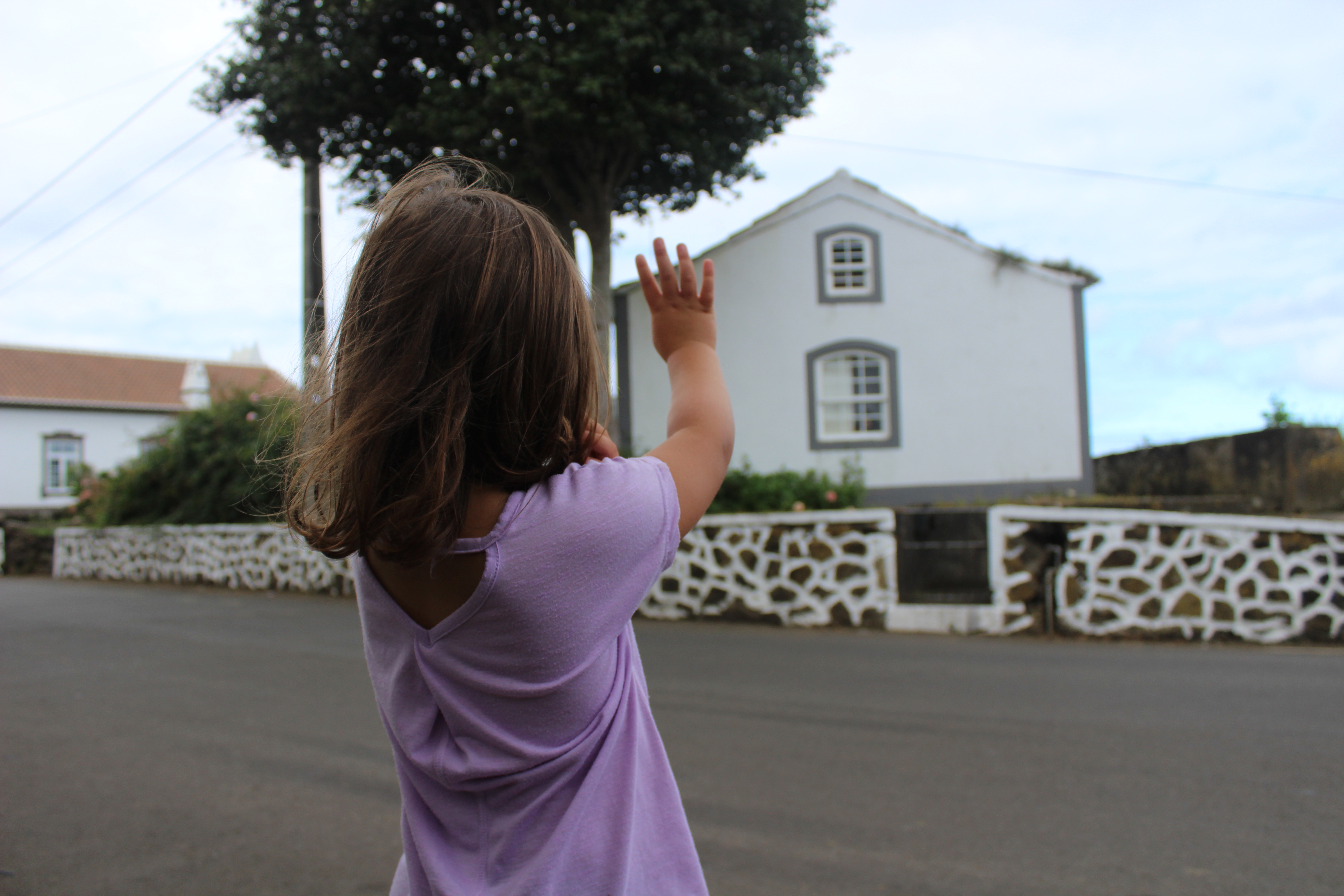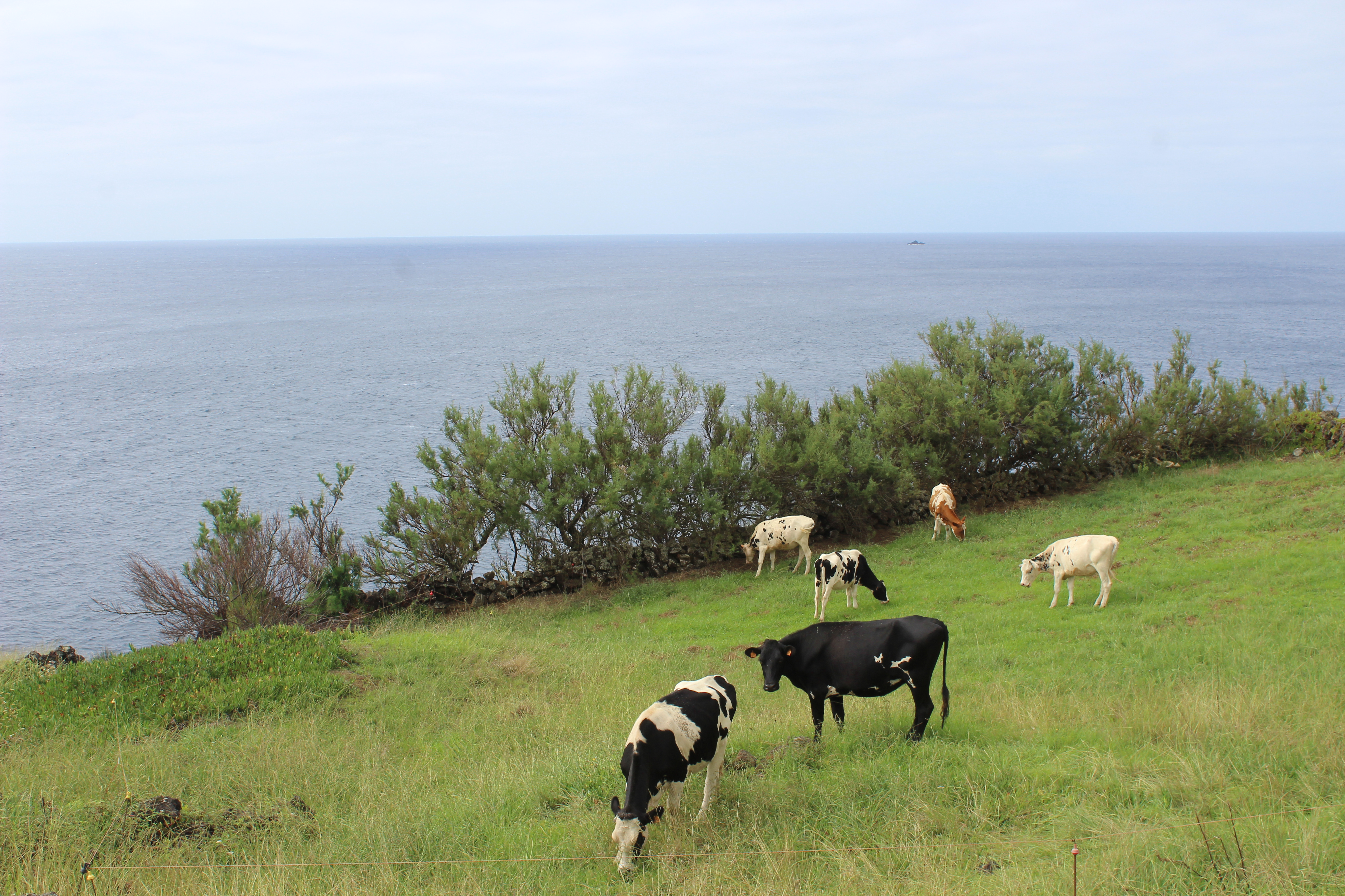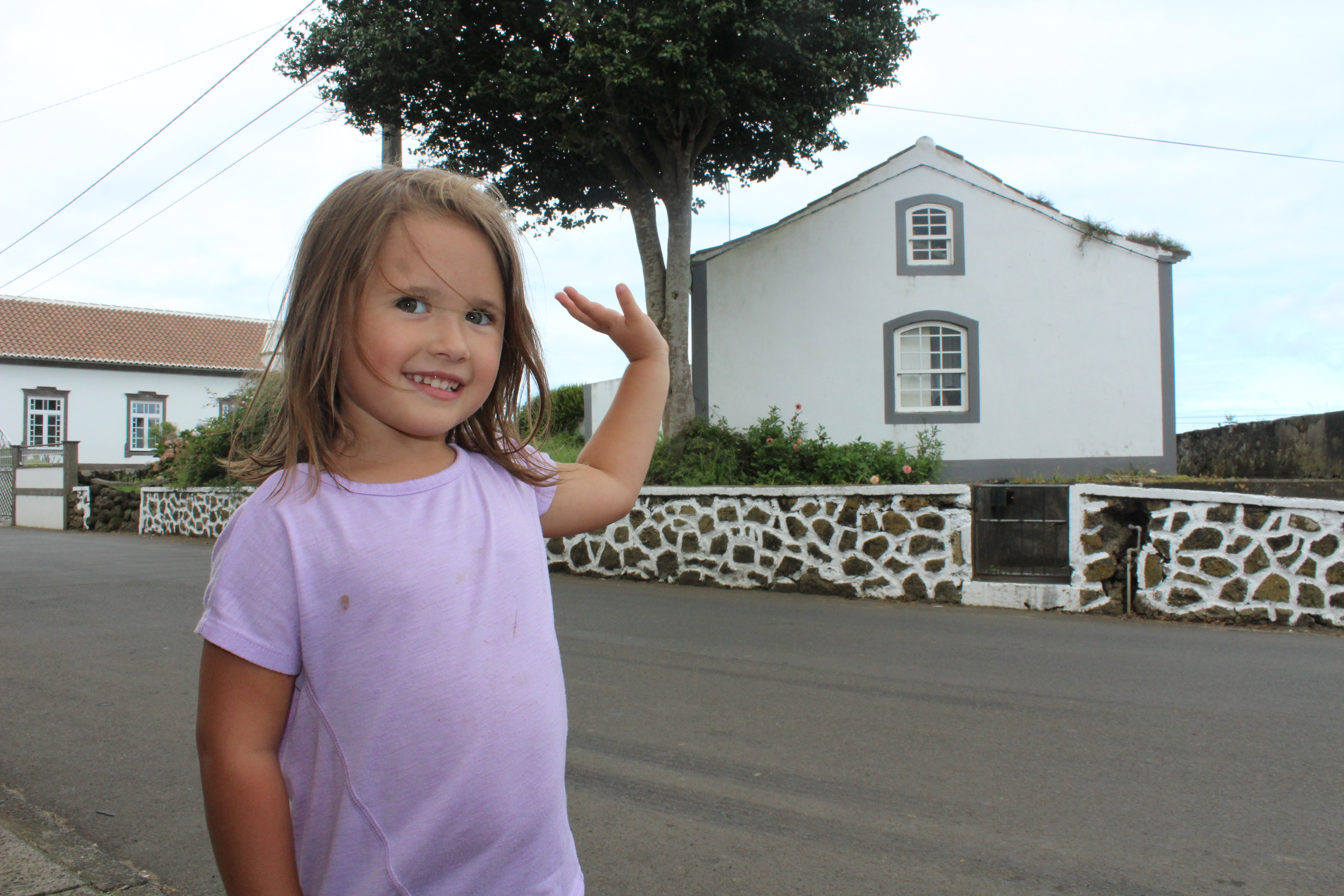Fontinhas is small, quiet and PERFECT. It’s 101% rural. We see the ocean in front of our house and we see the mountain behind our house. Flowers and Green are everywhere year round. This is the view out our kitchen window when I wash dishes and make coffee. Gardens, Cows to be milked, bright houses, and the sky. B.E.A.U. tiful.