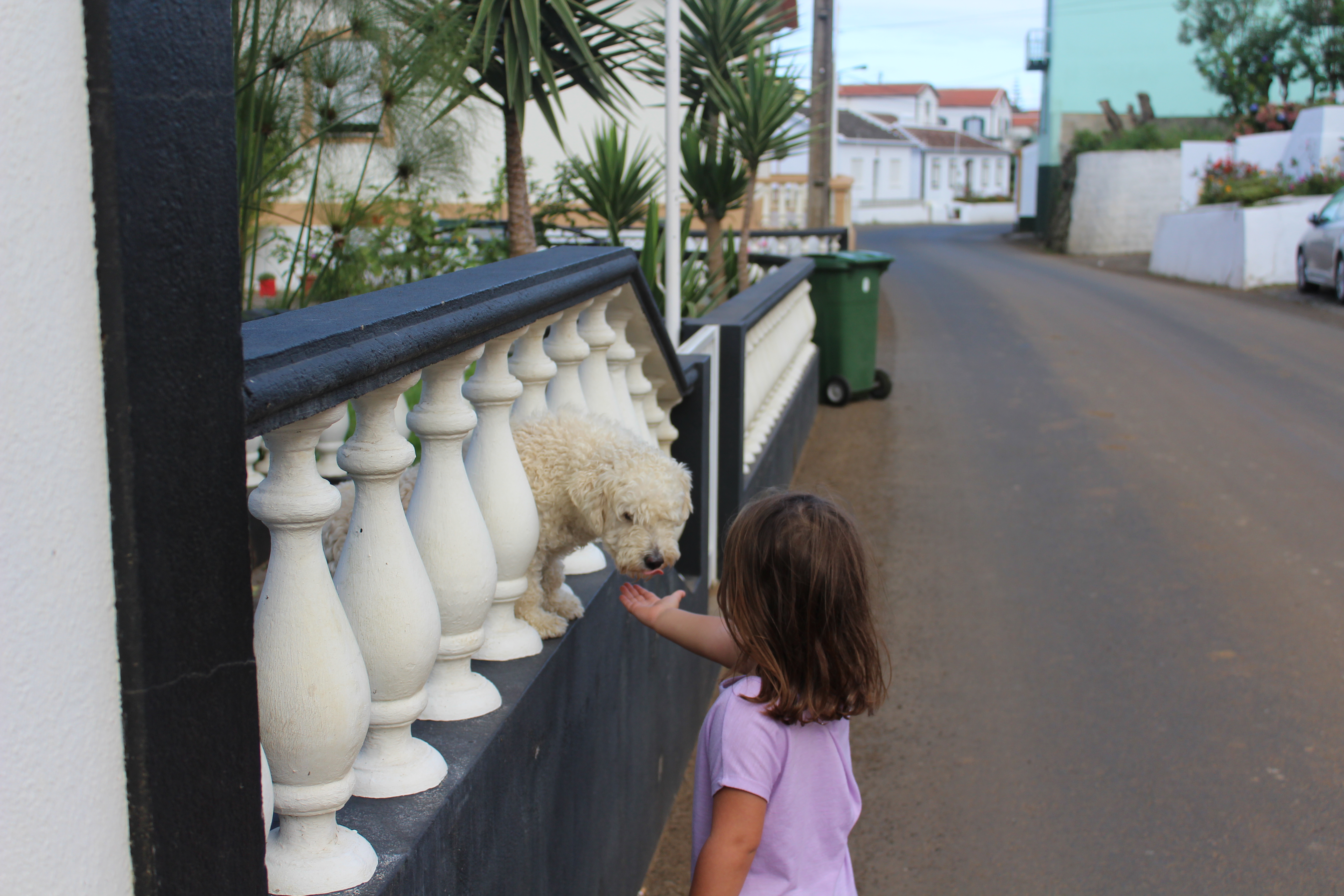 Harper and I try to walk the road every day to get out of the house and I decided to finally take our camera. We say hi to our favorite animals- especially this ADORABLE little pup- on the busy road. When I say busy, it’s not big city busy but tractors and speeding cars. There isn’t a speed limit in town… I feel the wind from car mirrors just about hitting us when we walk. The biggest downfall of Fontinhas is no sidewalks. But thats what makes Portugal unique. Dodge the cars lol YIKES… I make sure Harps is always touching the wall.